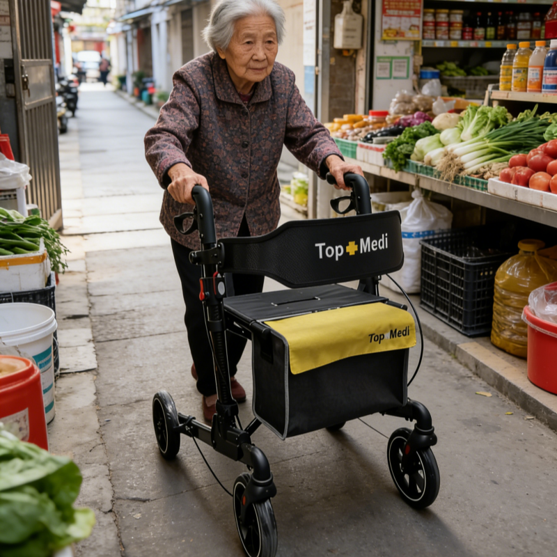 Aluminum Alloy 4 Wheel Rollator One-Click Double Folding Adjustable Height