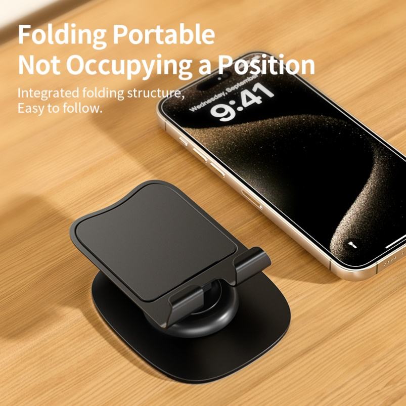 Aluminum Alloy Desk Flexible Adjustable Bracket Folding 360 Degree Rotating Phone & Tablet Holder for Live Streaming