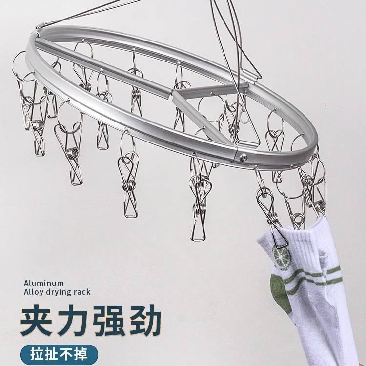 Aluminum Alloy Drying Rack Round Hook Type Multi Clip For Socks Underwear Balcony Use Durable Clothes Organizer