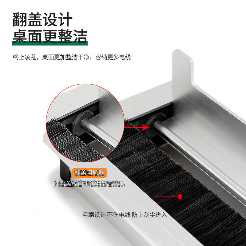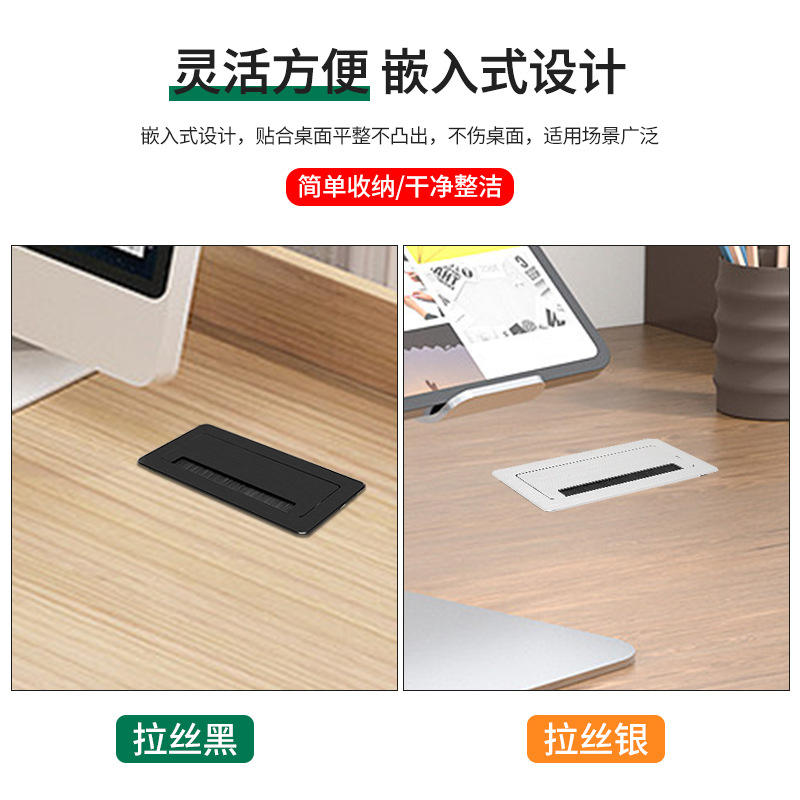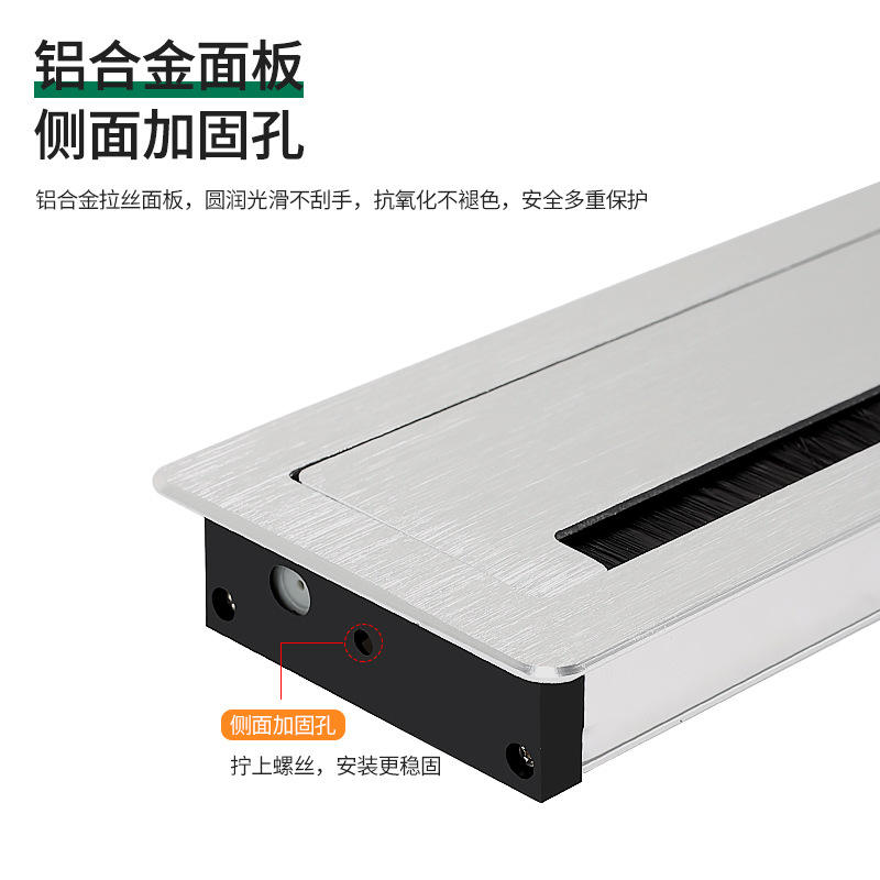 Aluminum Alloy Rectangular Cable Tray With Brush Damping Office Desktop Organizer Minimalist Design Standing Type