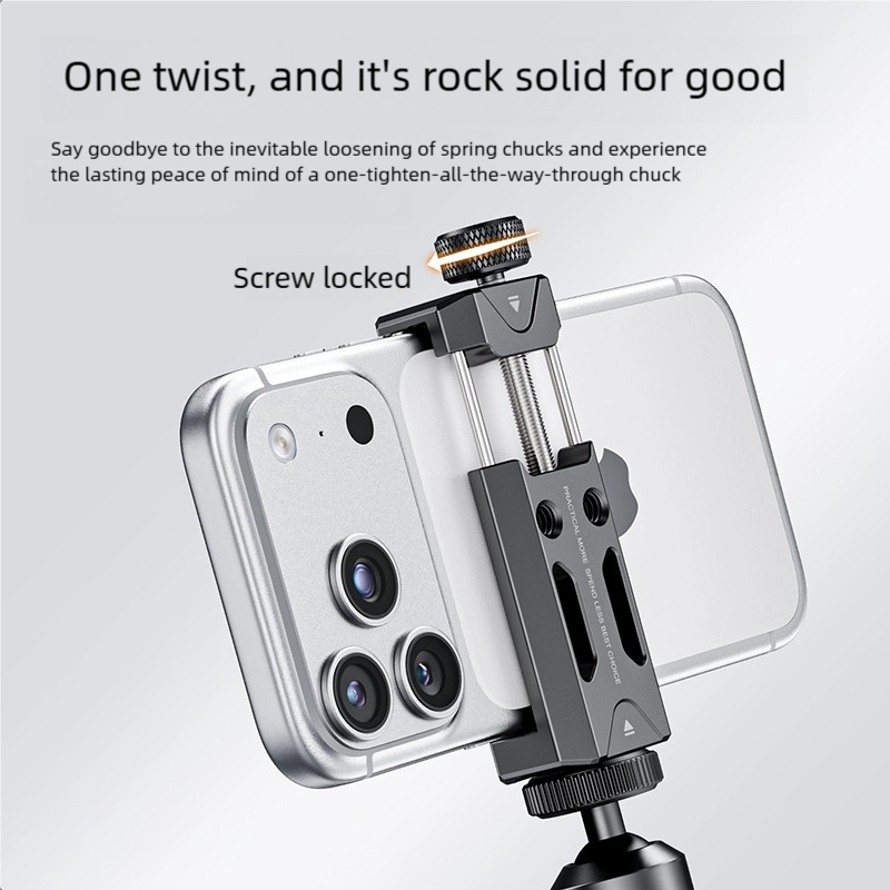 Aluminum Alloy Universal Phone Camera Holder, Screw Lock Anti-Droop Ball Head, Quick Switch Horizontal/Vertical Live Streaming