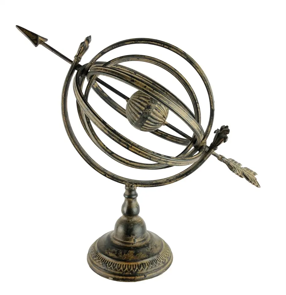 Vintage Art Deco Aluminum Armillary Sphere Sundial Globe Astrolabe Nautical Home Decorative Desk Ornament Celestial Arrow Design