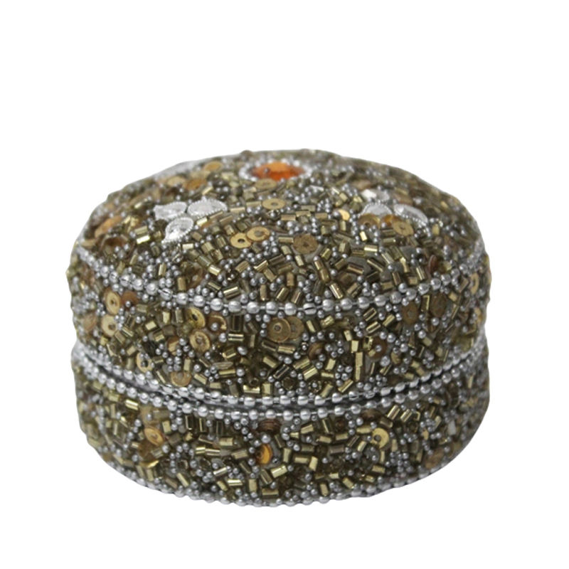 Aluminum & Beads Round Box With Lid Multi Color Jewelry Boxes for Home & Wedding Storage in Handmade Bulk