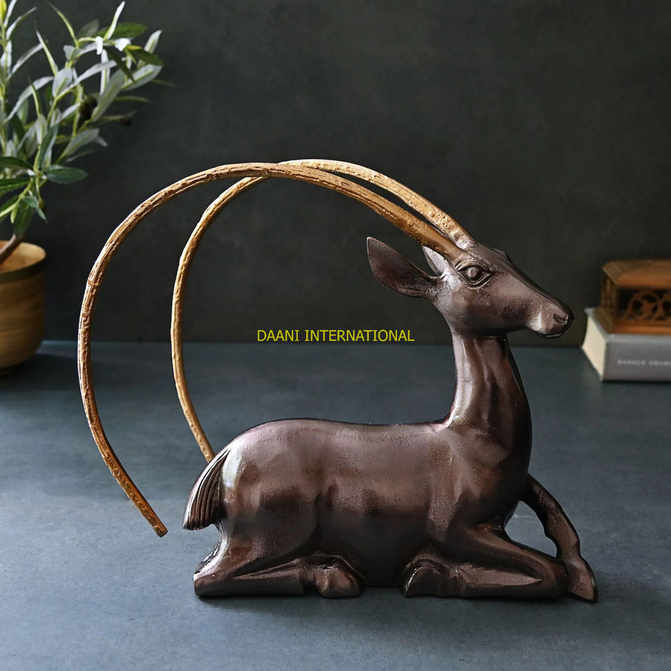 Aluminum Casting Reindeer Figurine with Wooden Base Luxury Deer Statue Modern Christmas Decoration Wildlife Accent Sculptures