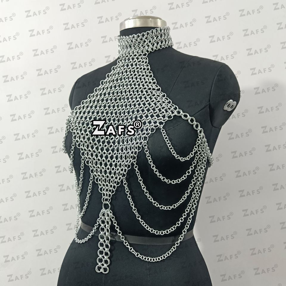 Aluminum Chainmail Top Medieval Fantasy Top Cosplay Rave Outfit Lightweight & Durable Top for womens Wholesale Price Available