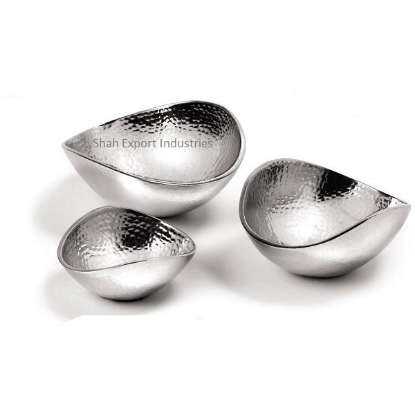 Aluminum Food Serving Bowl Hammered Design Kitchenware Metal Snacks Bowl Heavy Duty Large Silver Serving Bowls
