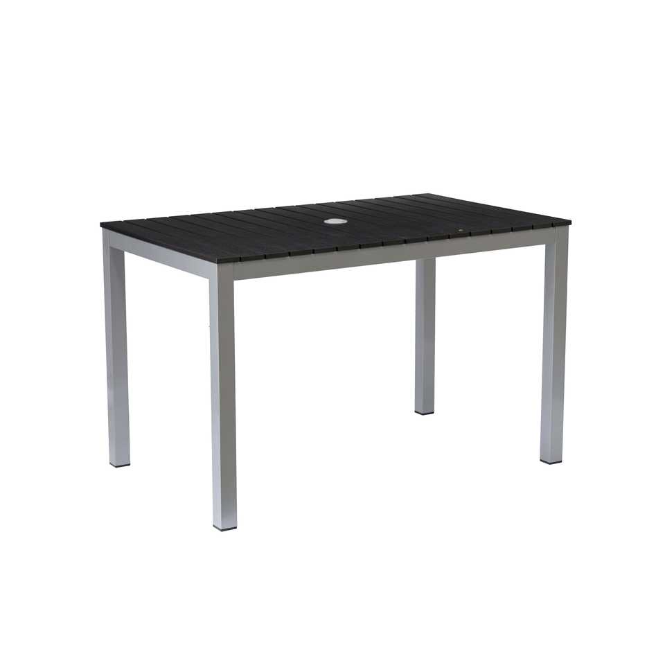 Aluminum Frame Outdoor Dining Table with Teak-Look Plastic Wood Slats 47.2 X 29.5 Rectangular Table