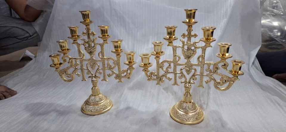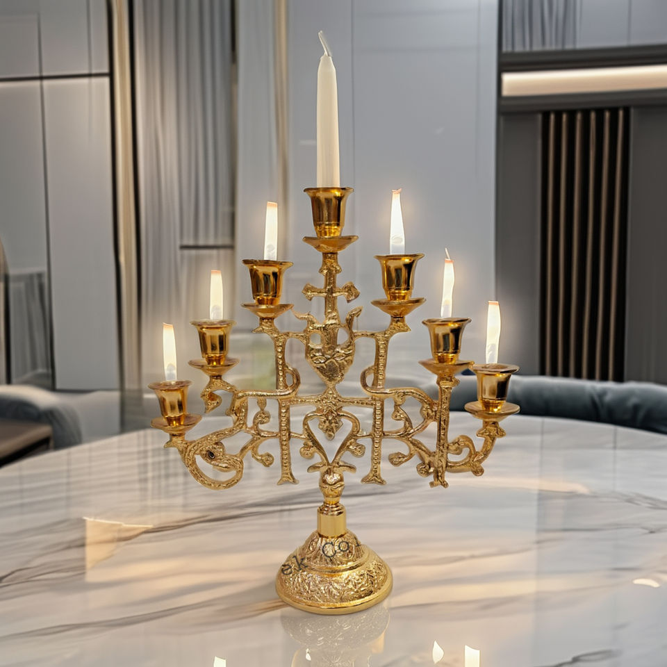 Aluminum Menorah 7 Branches Gold Plated Tall Church Candelabra Traditional Judaica Hanukkah Candle Stand Jewish Ceremonial Lamps