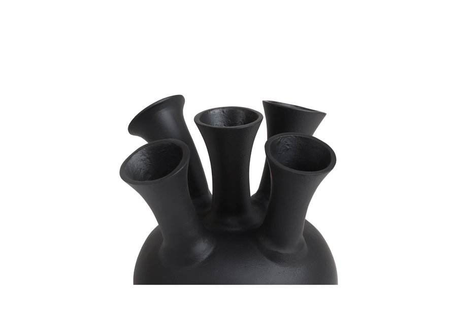 Aluminum Metal Handcrafted Decorative Round Shaped Matt Black 5-Mouth Horn Table Top Vases