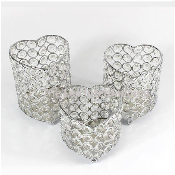 Aluminum Metal Mirror Polish Crystal Beads Silver Color Candle Holder Fancy Style Decorative Candle Holder