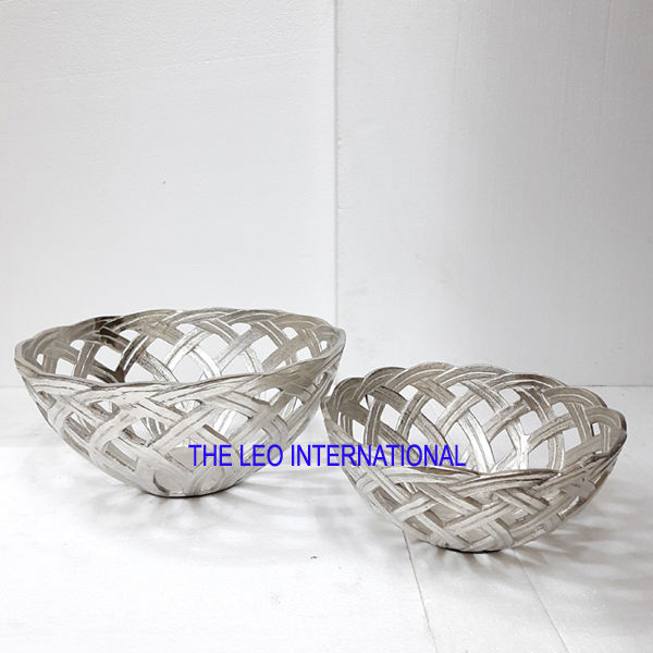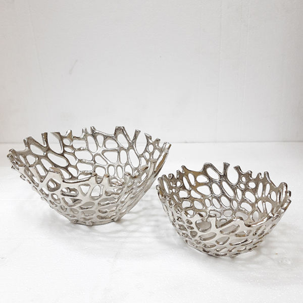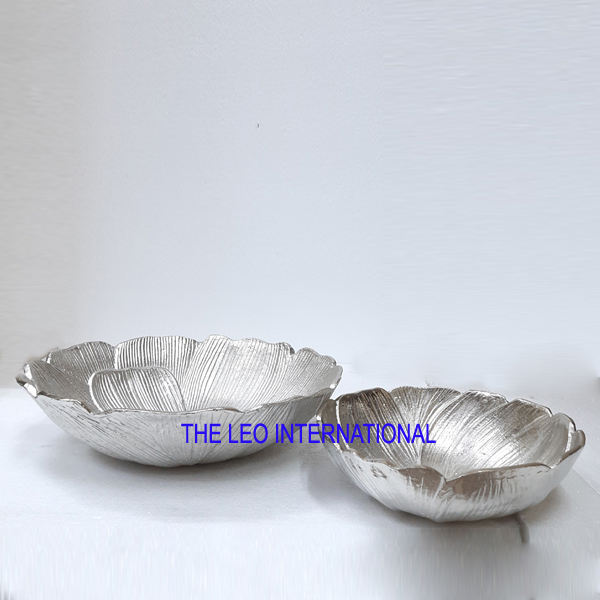 Aluminum Metal Round Shape Silver Plated Luxury Fancy Bowl Nut Serving Dry Fruits Home Decorative Bowl