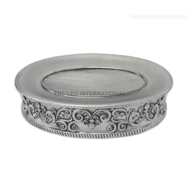 Aluminum Metal Silver Plated Oval Shape Soap Dish Beautiful Embossed Texture Luxury Look Decorative Soap Dish