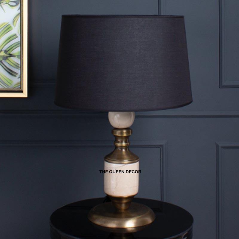 Aluminum Metal Stone Designer Rounded Shape Black Fabric Shade Gold Antique Finish Table Lamp Hot Selling
