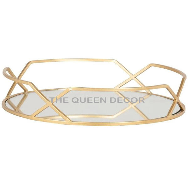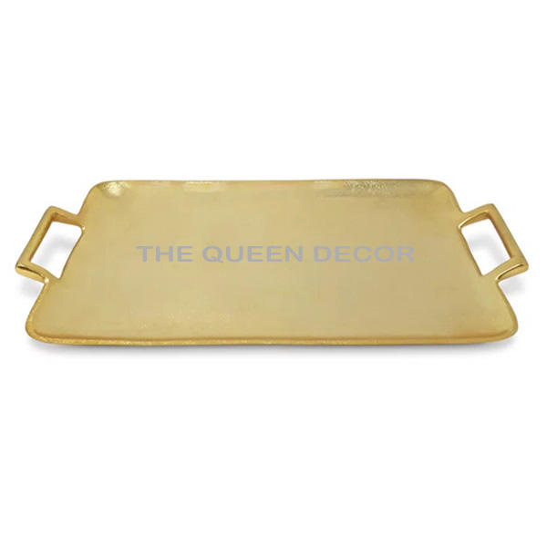 Aluminum Metal Unique Shape Gold Enamel Finished Decorative Tray Fancy Style Luxury Handmade Hot Selling