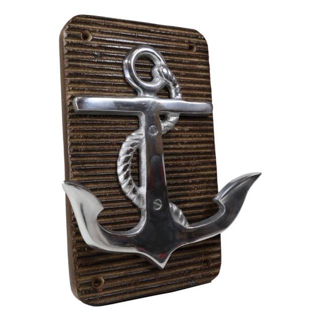 Aluminum Nautical Marine Ship Anchor Wall Mounted Decor Plaque with Double Peg Hooks Seaside Sailor Coastal Home Organization
