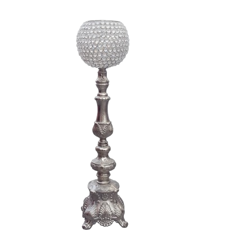 Aluminum Nickel Plated Tall Candle Holder With Crystal Globe Wedding & Party Floor Decoration Handmade Candle Holder Pillar