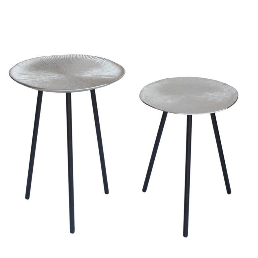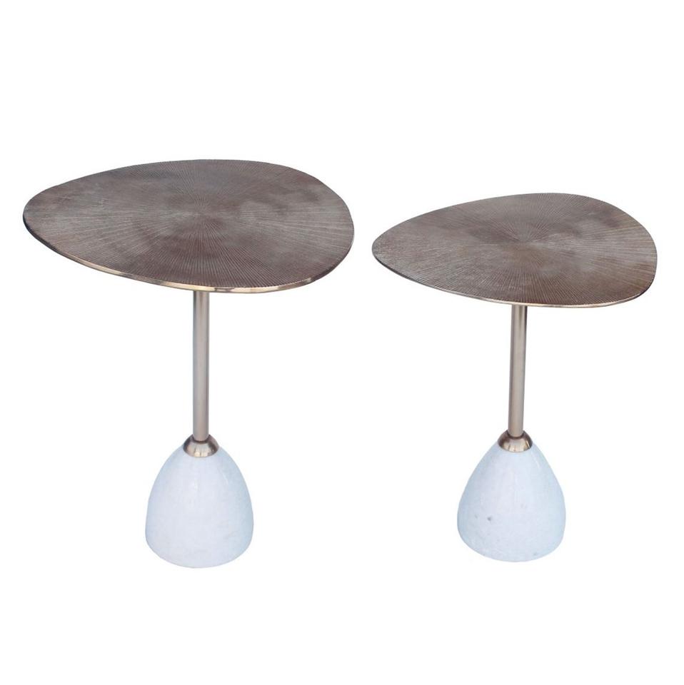 Aluminum Palm Lining Texture Side Table With Marble Oval Base Table Usage Office Home Room Restaurant Round Made in India Square