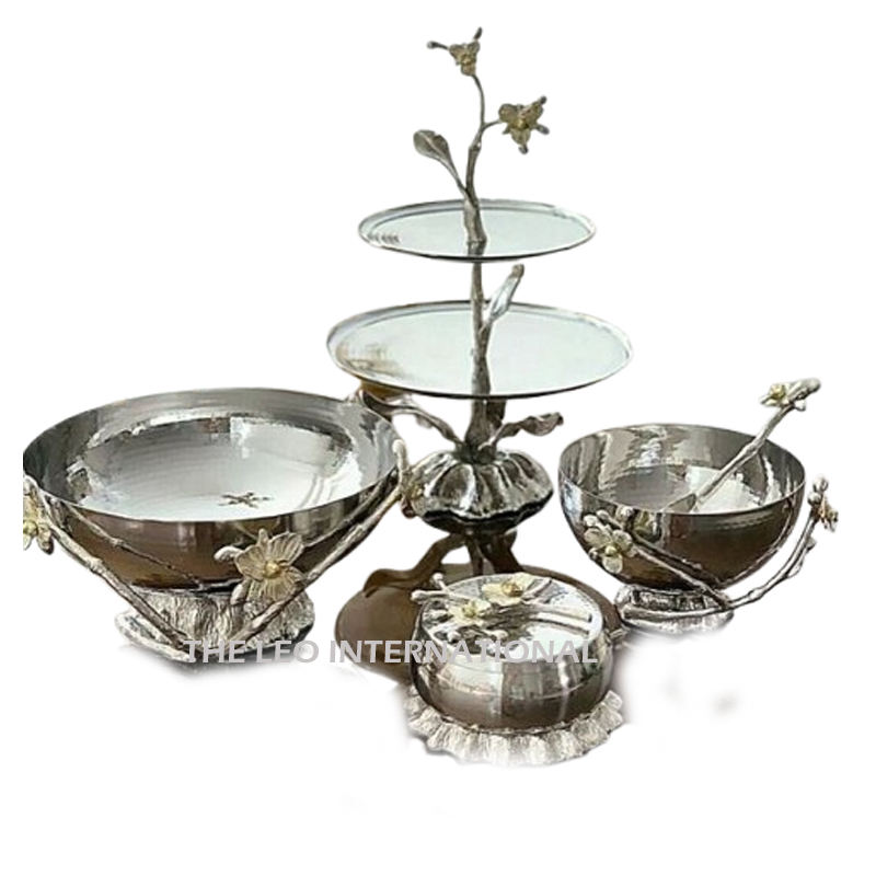 Aluminum Stainless Steel Metal Hammered Texture Shiny Polished Decorative Bowl Best Quality Flower Shape Design With Lid Bowl