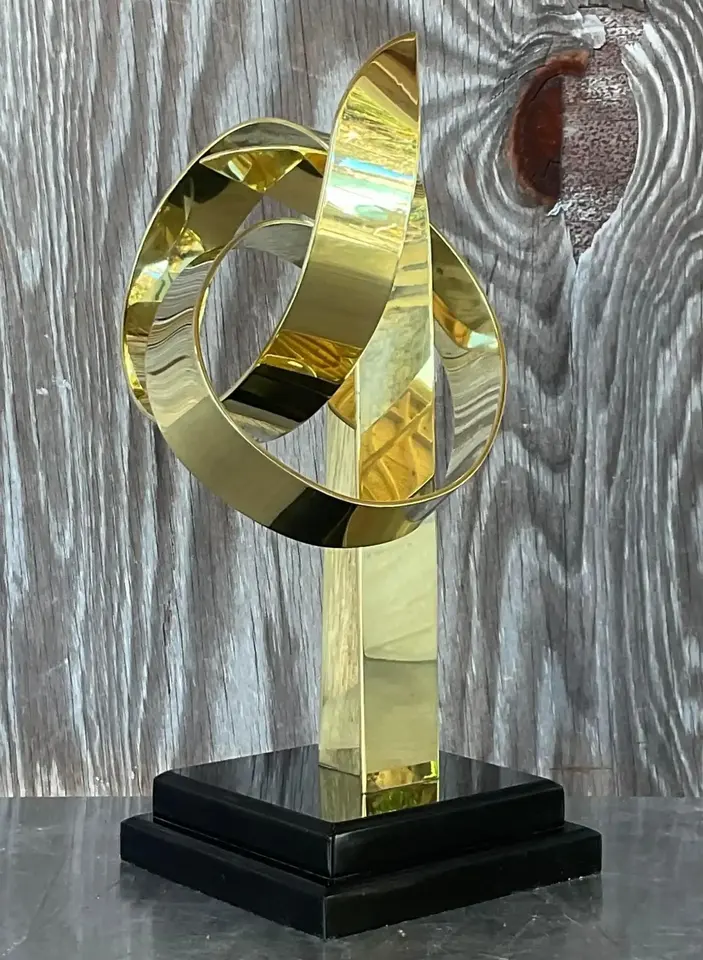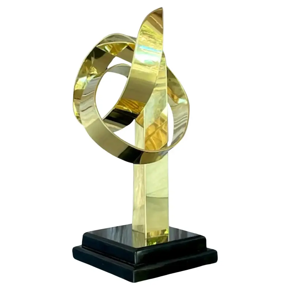Aluminum Vintage Boho Van Teal Brass Loop Sculpture Modern Abstract Art Decor Home Office Display modern polished sculpture