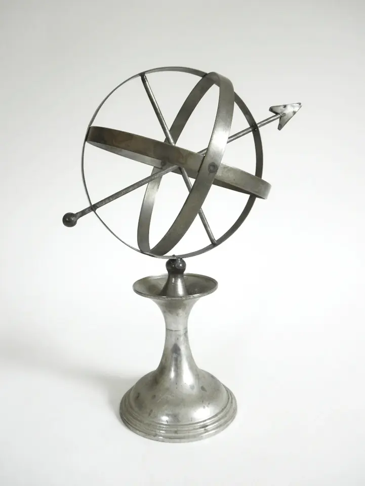 Aluminum Vintage Silvered Bronze Armillary Sphere Large Celestial Globe Sundial Garden Decor Home Office Ornament Antique Style