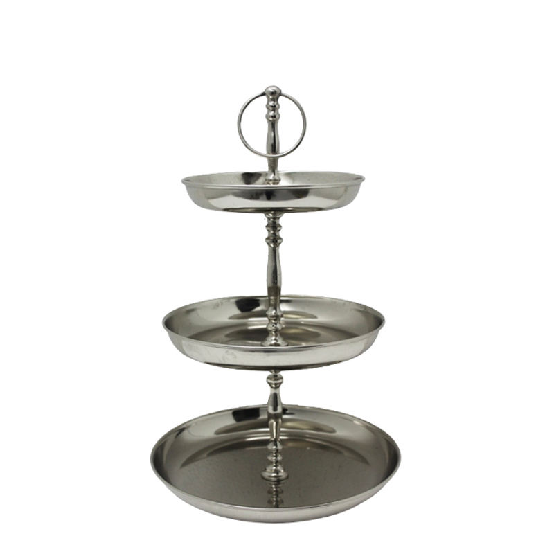 Aluminum & Wood 4 Tier Cake Stand With Handle Silver & Natural Color Floating Cake Stand for Wedding & Table Top Decoration