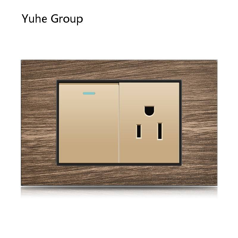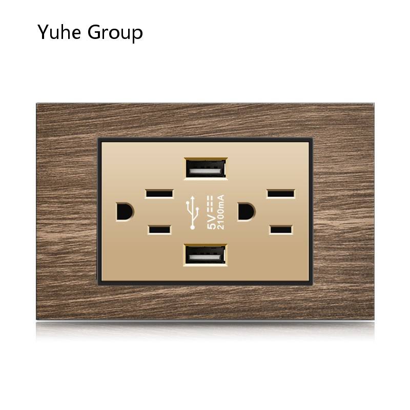 Aluminum brushed black panel Mexican standard American all-in-one six-hole socket, with USB wall power supply