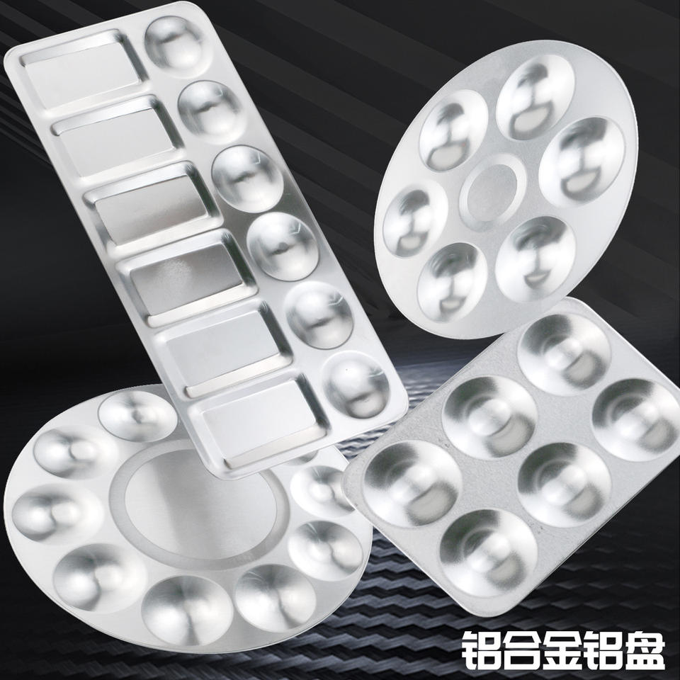 Aluminum Metal Palette Aluminum Plate Hand Painted Gouache Watercolor Painting Palette Disk Round Rectangular Palette