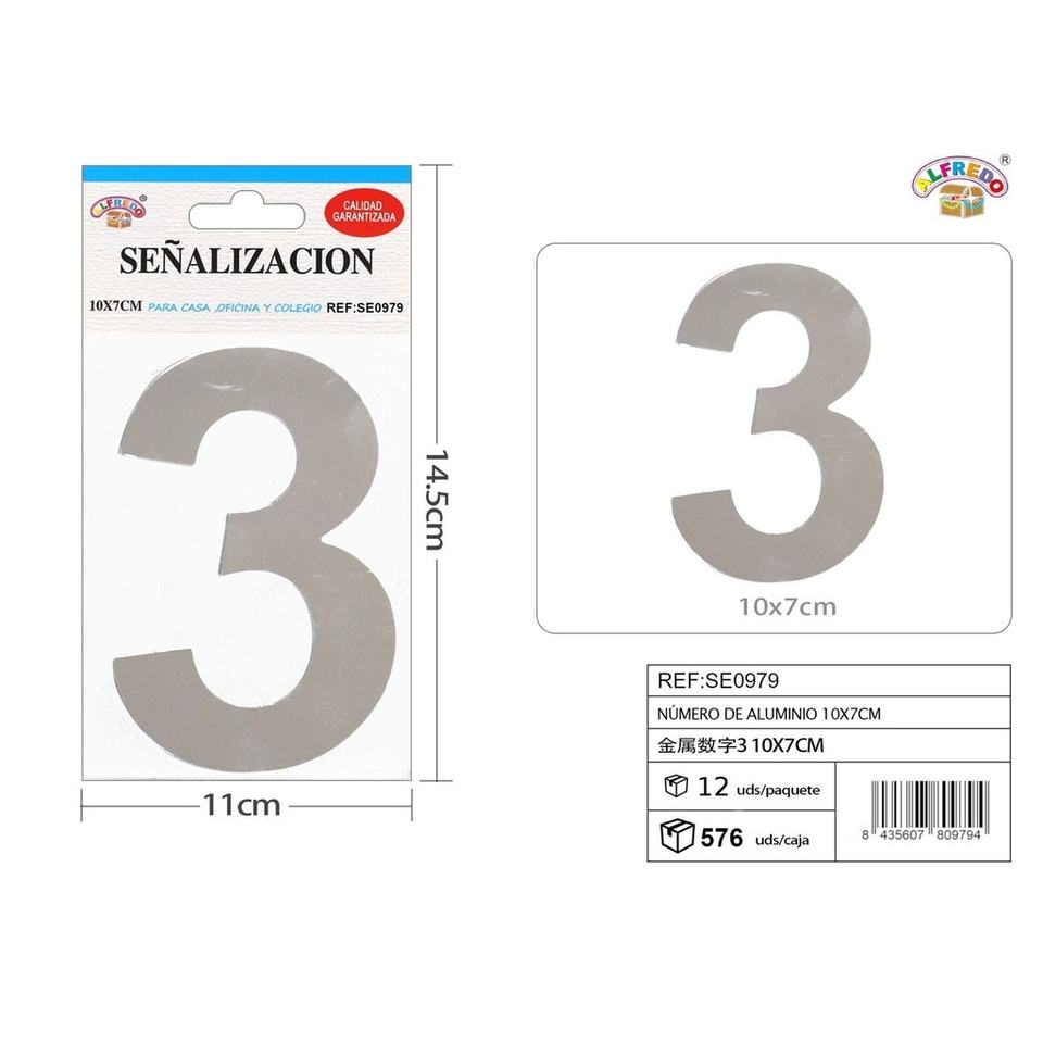 Aluminum sign - Number 3 10x7cm - Metal signs