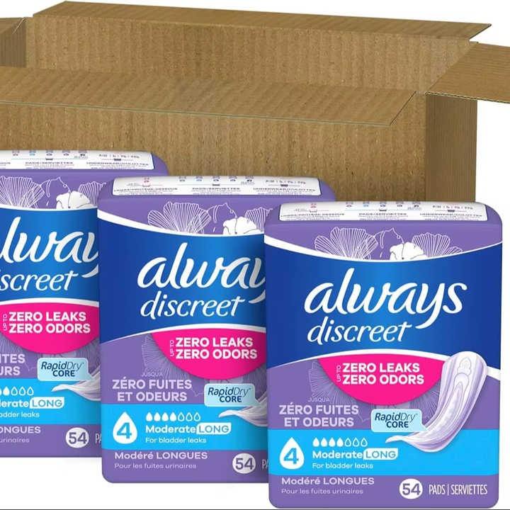 Always Discreet Adult Incontinence Pads for Women, Moderate Absorbency, Long Length, Postpartum Pads, 162 CT