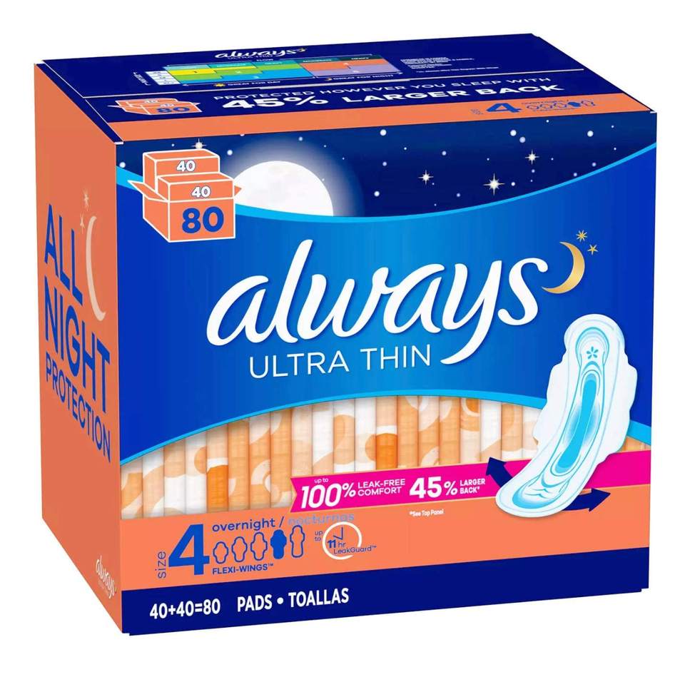 Always Maxi Size 5 36 Count Overnight Pads with Wings Extra Heavy Maternity Protection for Sleep Overs