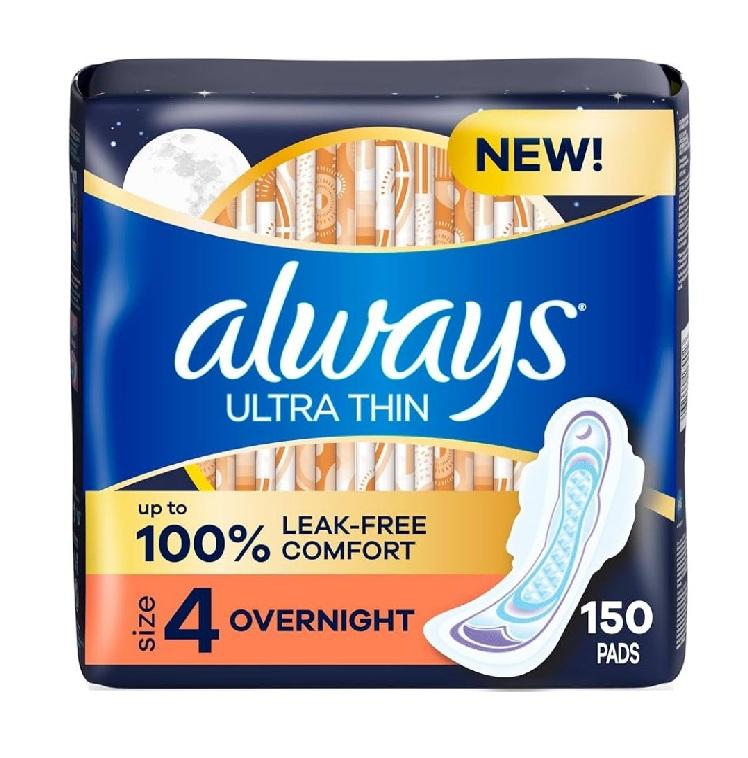 Always Ultra Thin Overnight Pads with Wings Size 4 96 Count for Women Soft Secure Fit Heavy Flow Cheap Bulk Sale