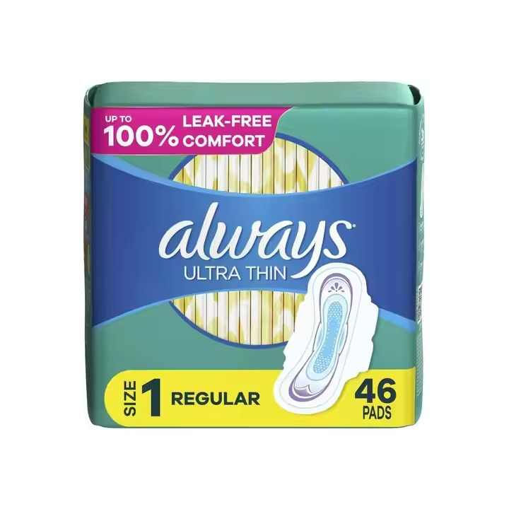 Always Ultra Thin Pads for Women, Size 1 Regular Absorbency Without Wings Unscented, 44 Count X 3 Packs