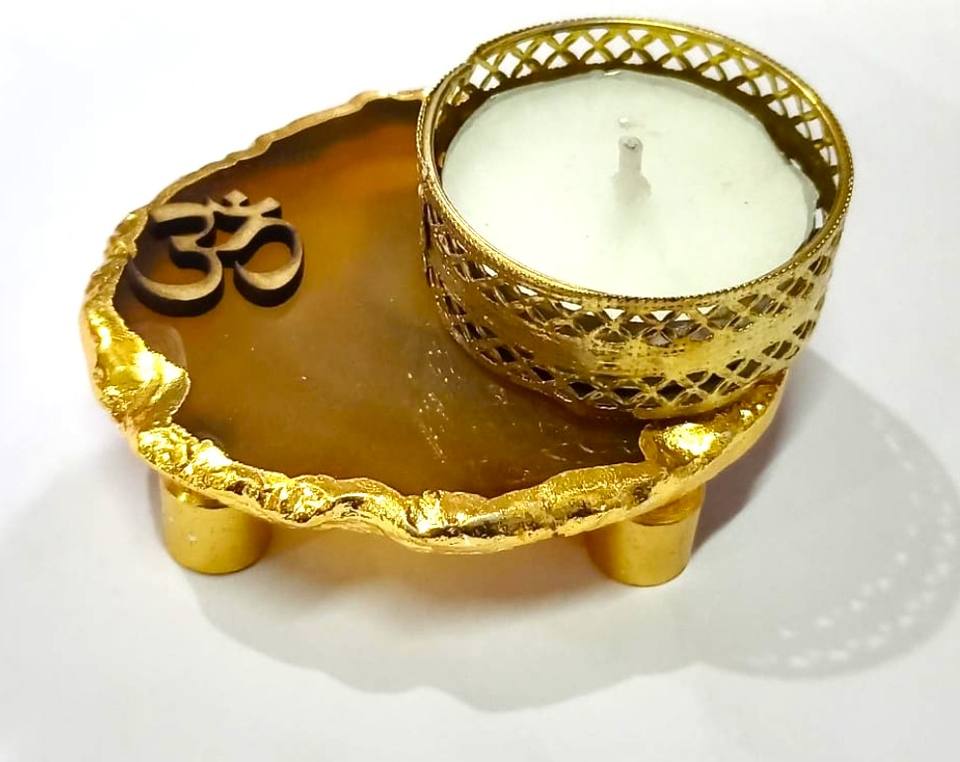 Amayra Crystals Exports 100% Genuine Semi-Precious Stone Crafts Gemstone Agate Purple OHM Coaster Handmade Candle Holder