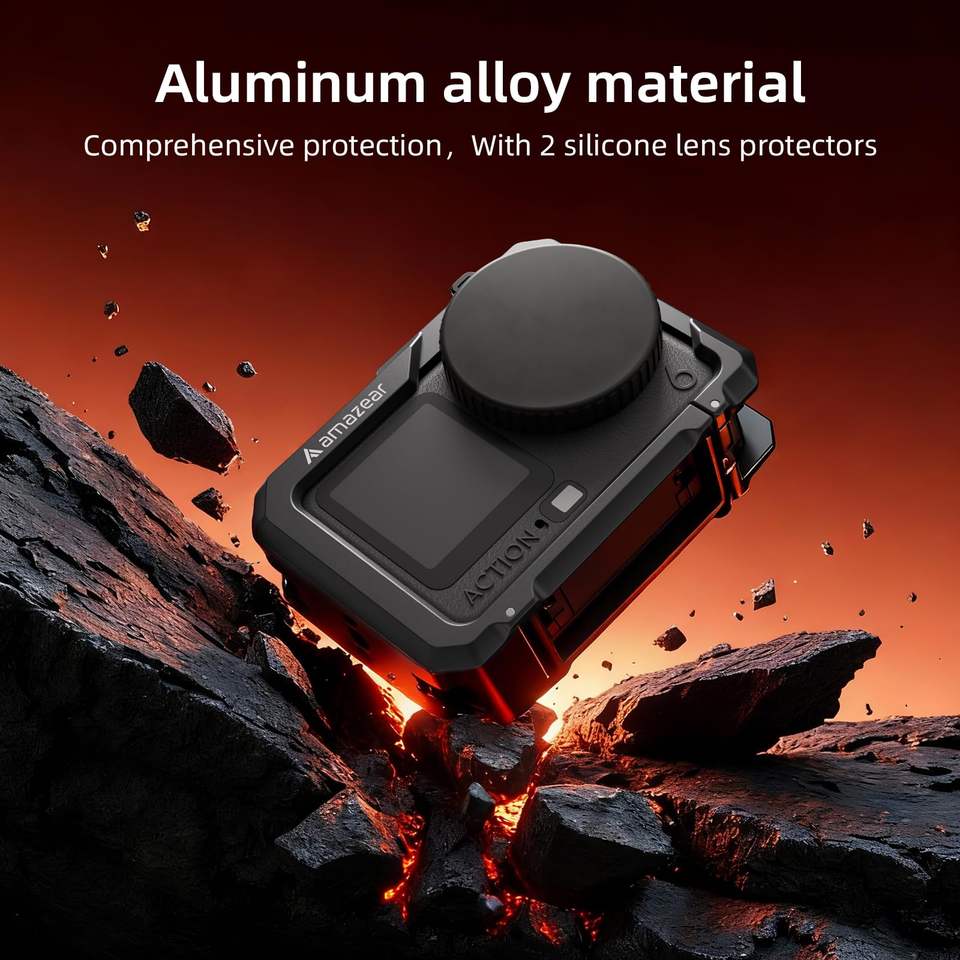 Amazear Aluminum Alloy Cage for DJI Osmo Action 6 Lightweight Shockproof Housing with Quick-Release Magnetic Base