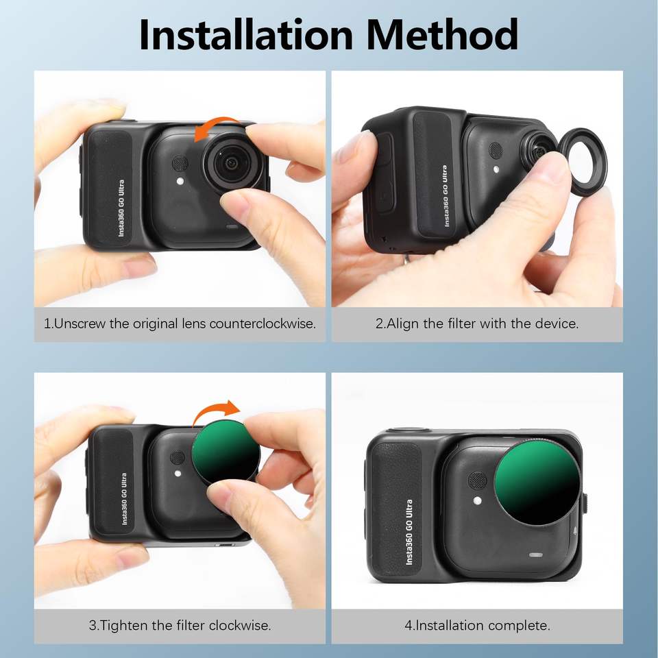 Amazear HD Filter Kit for Insta360 GO Ultra 4-Pack ND8/ND16/ND32 & CPL Set Multi-Layer Nano Coating Easy Install Anti-Scratch