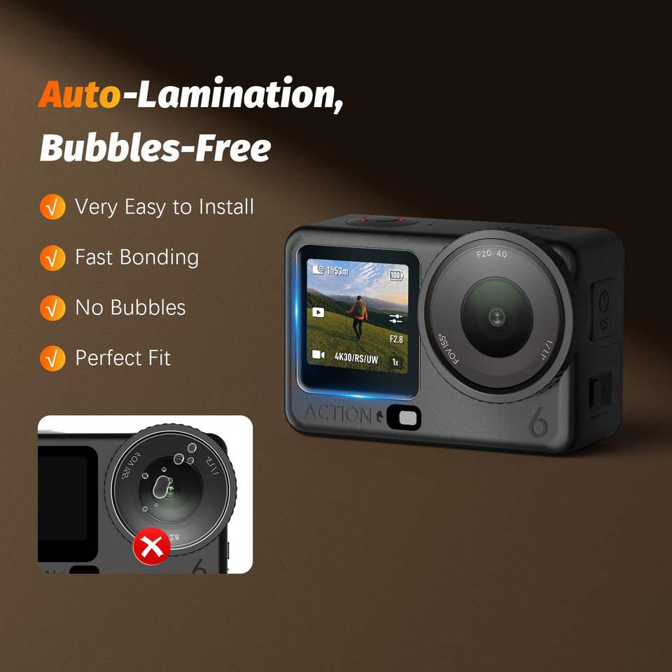 Amazear HD Screen Protector for DJI Osmo Action 6 OLED Display 6-Pack Full Coverage Tempered Glass Bubble-Free Installation