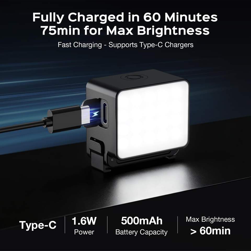 Amazear LED Video Light for DJI Osmo Action 6 5600K Bi-Color Fill Light with USB-C Charging for Vlog & Selfie Photography