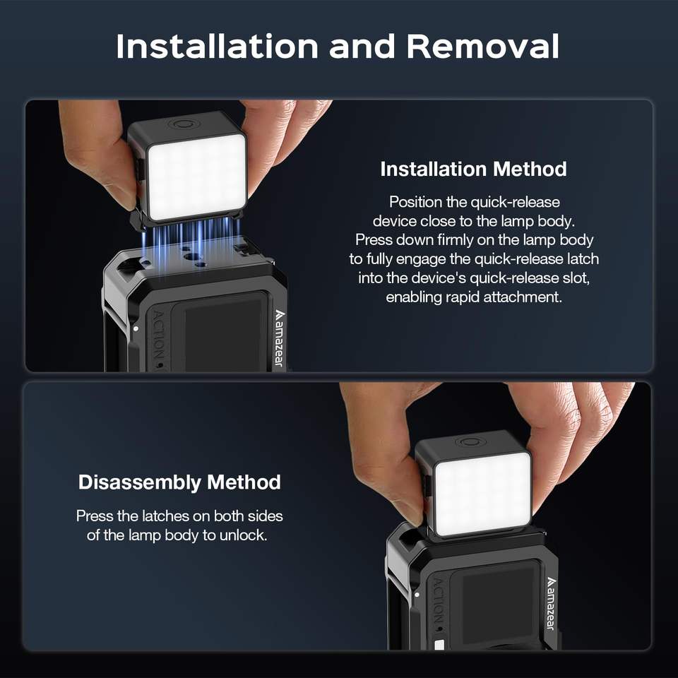 Amazear Professional Selfie Light for DJI Osmo Action 6 Portable LED Video Light with 10-Level Brightness Adjustment