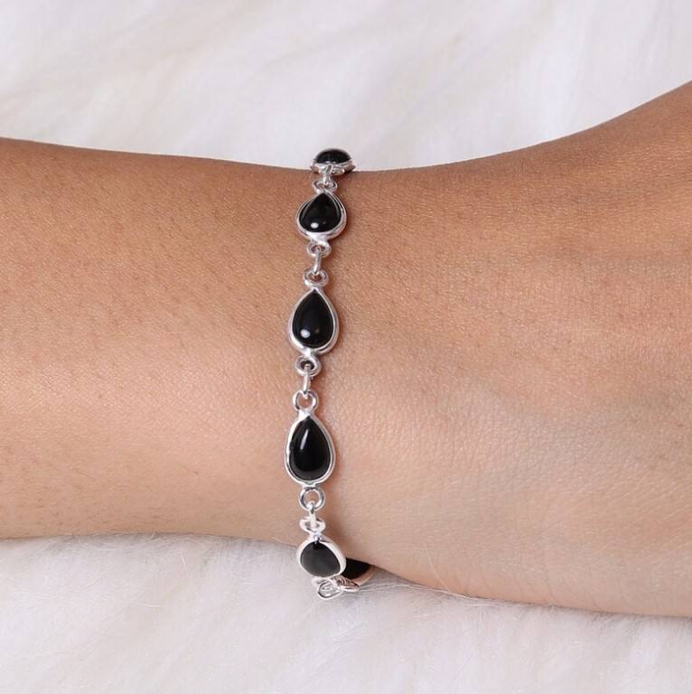 Product Name:Natural Black Onyx Gemstone silver bracelet
