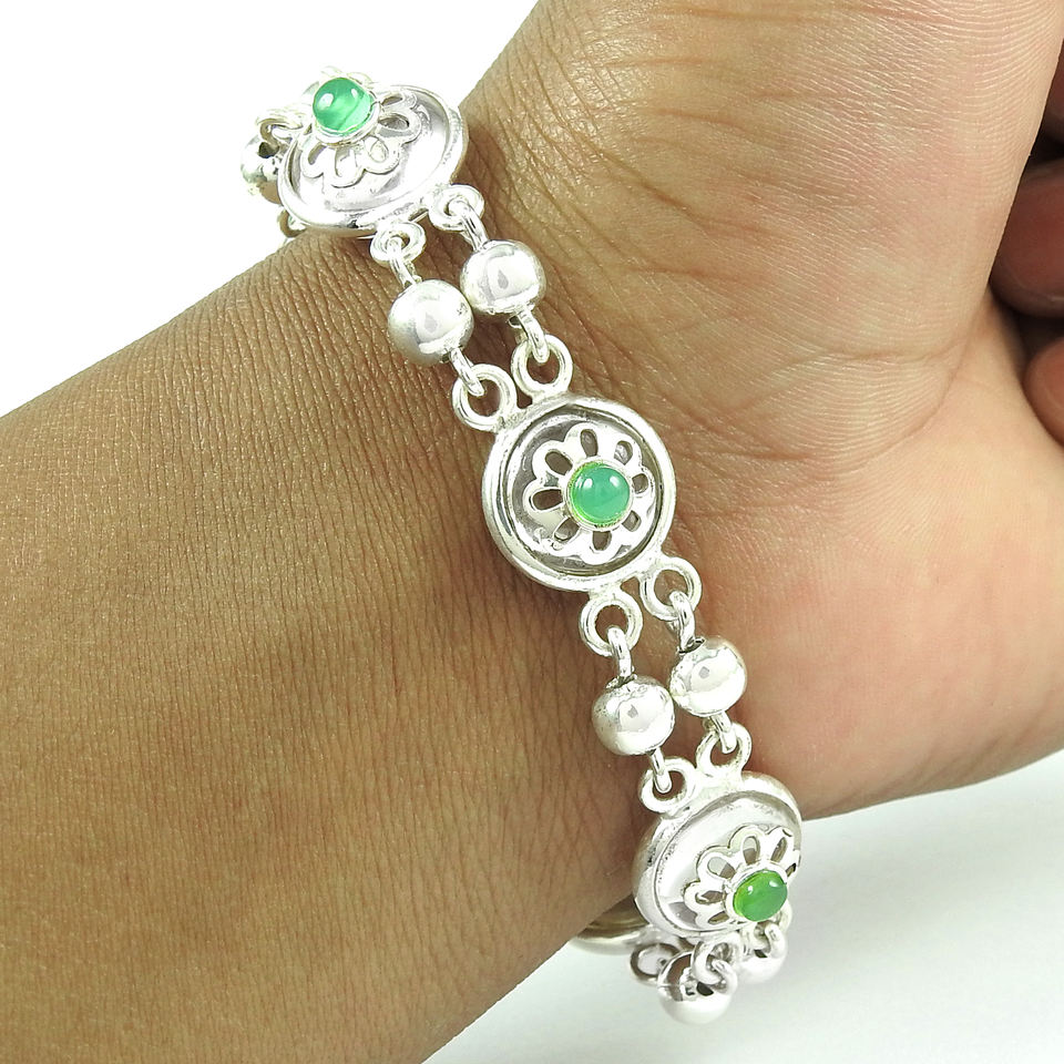 Amazing Bracelet for Woman Girls 925 Sterling Silver Natural Green Onyx Gemstone Classic Style Bracelet Handmade Jewelry India