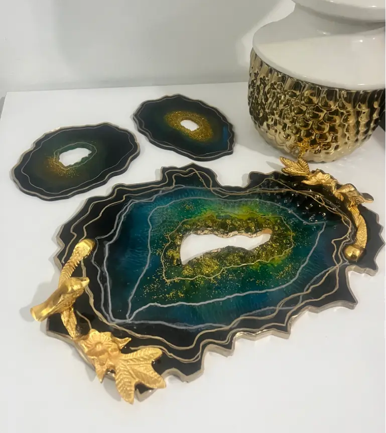 Amazing Design Epoxy Resin Serving Tray Elegant Resin Serving Tray Modern Decorative Platter Storage Tray