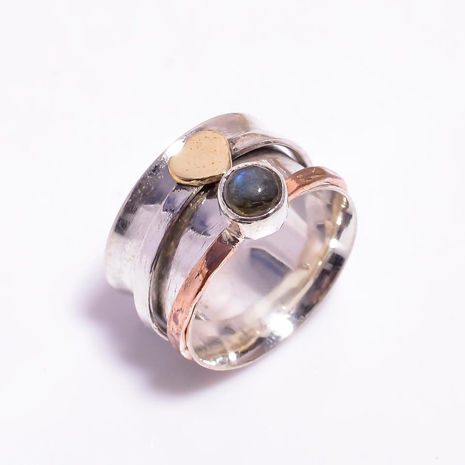 Amazing Design Natural Rainbow Moonstone 925 Sterling Silver Meditation Spinner Ring, Manufacturer Silver Gemstone Jewelry