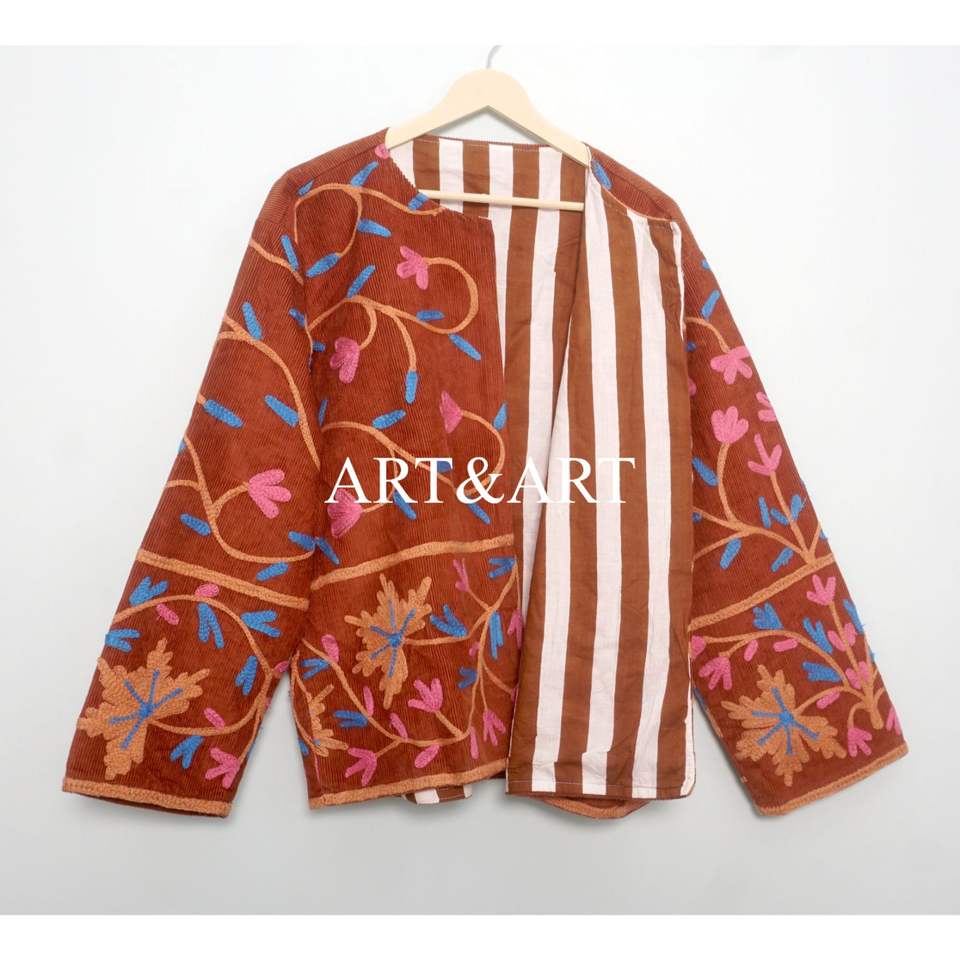 Amazing Look Cotrise Embroidery Floral Quilted Winter Jacket Women's Regular Length O-neck Full Sleeve 100% Cotton Breathable