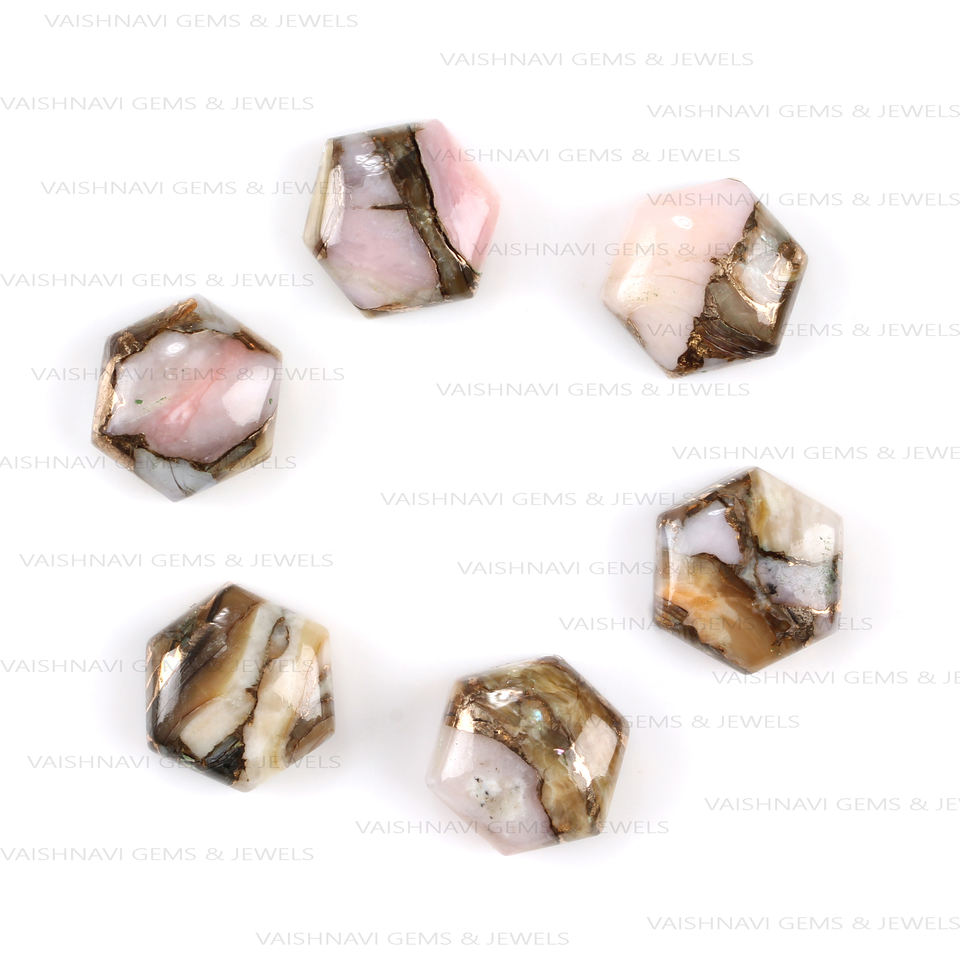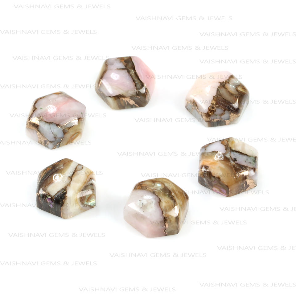Amazing Natural Pink Opal Copper Abalone Shell 10mm Hexagon Flat Back Calibrated Cabochon Loose Gemstone Jewelry Making Supply