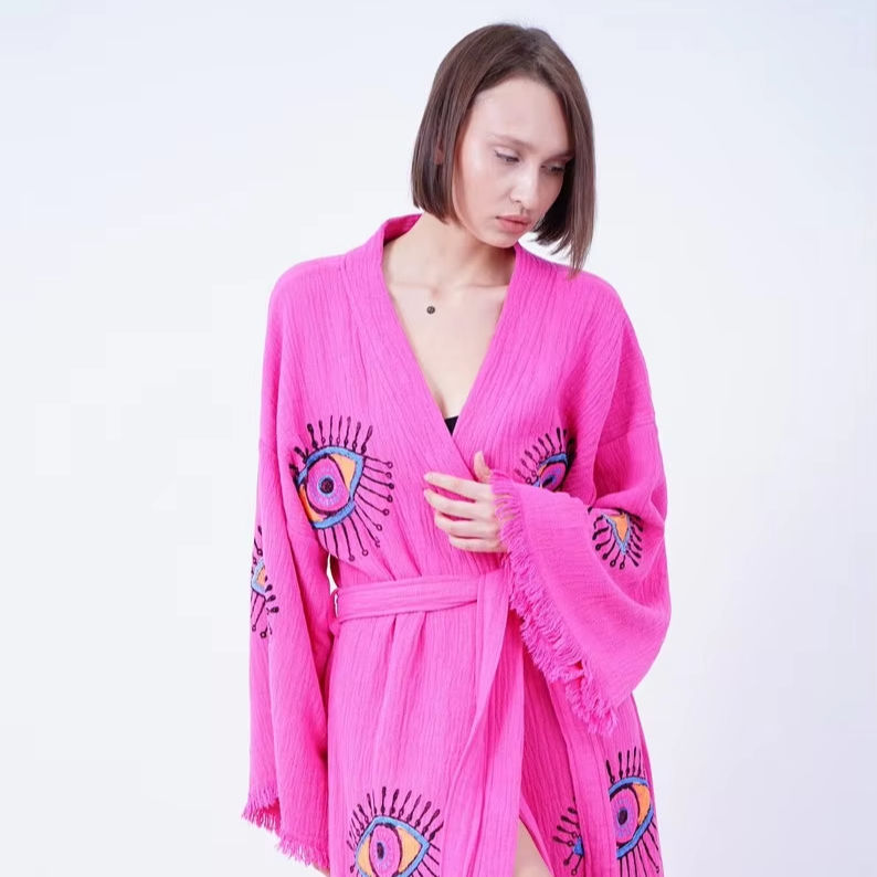 Amazing Quality Handmade Embroidery Eye Boho Festival Long Kimono Oversized Cardigan Women Long Sleeve Attractive Summer Elegant