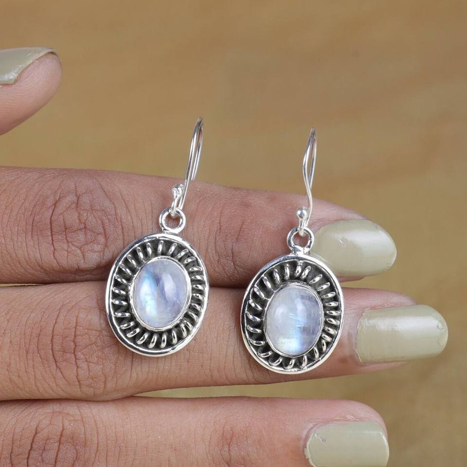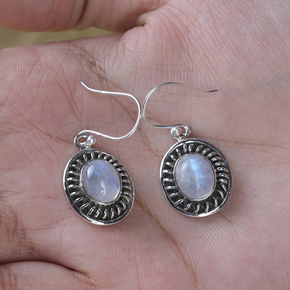 Product Name:Natural Rainbow Moonstone Gemstone Silver Earrings