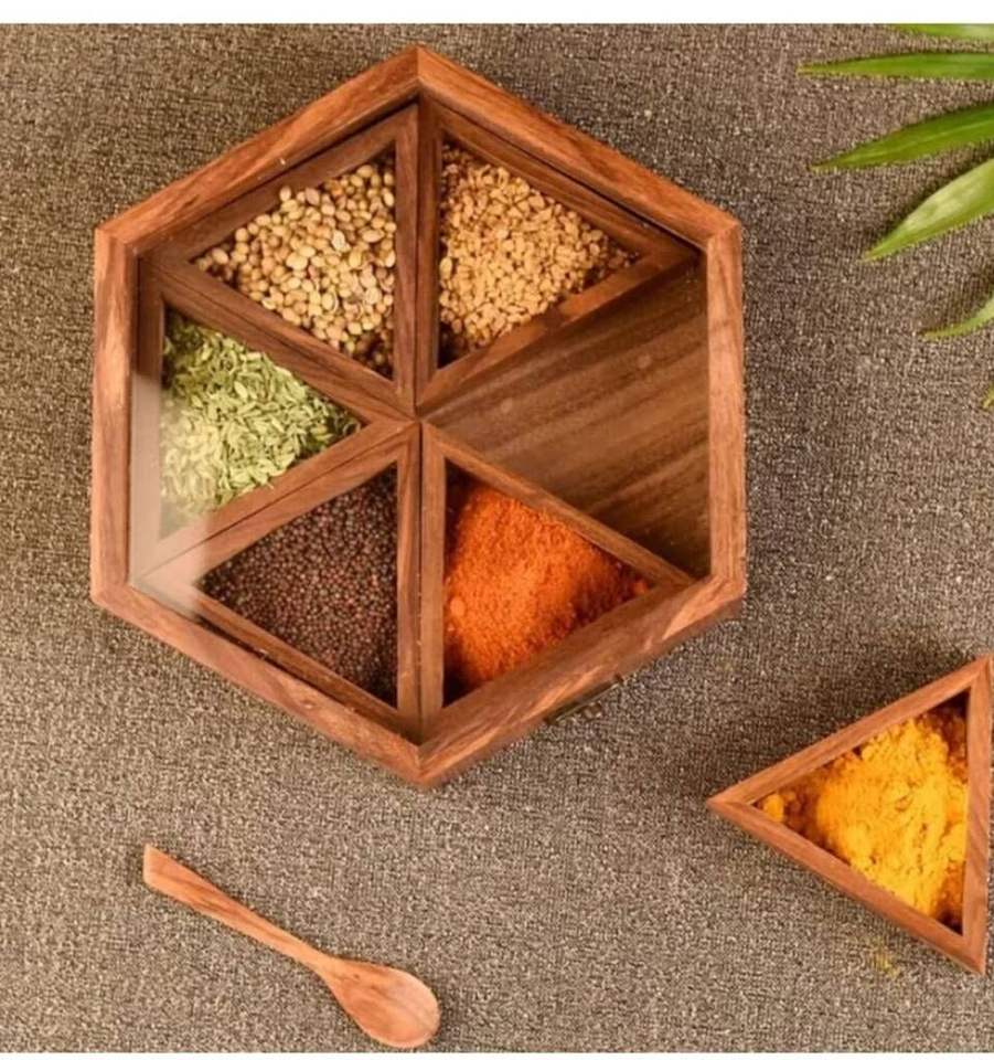 Amazing Round Shape Wooden Spice Box for Kitchen & Restaurant Latest Masala Box with Spices Rack for India