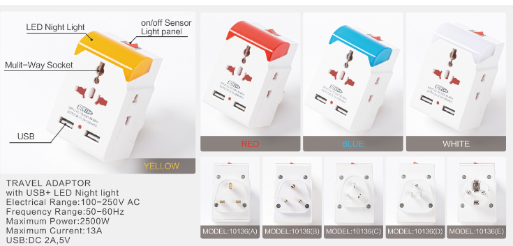 DongYi DC 5V 2A Universal Safety Certified Plug-in Connection LED Strip Lights CCTV Camera Router Multi-Tips AC