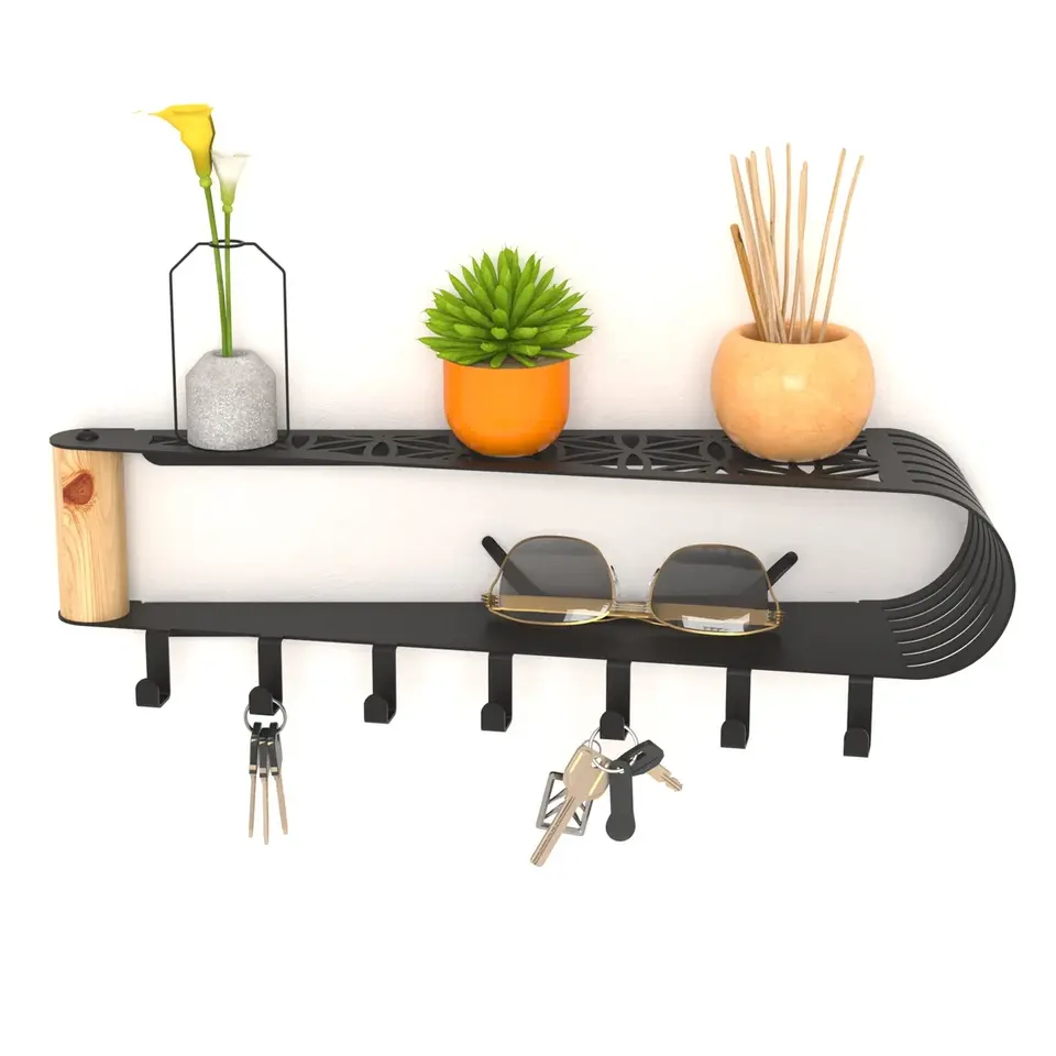 For Hot Sale Mail Entryway Organize Mail Post Black Metal Key Holder Wall Modern Design 5 Hook Hanger Bathroom Living Room