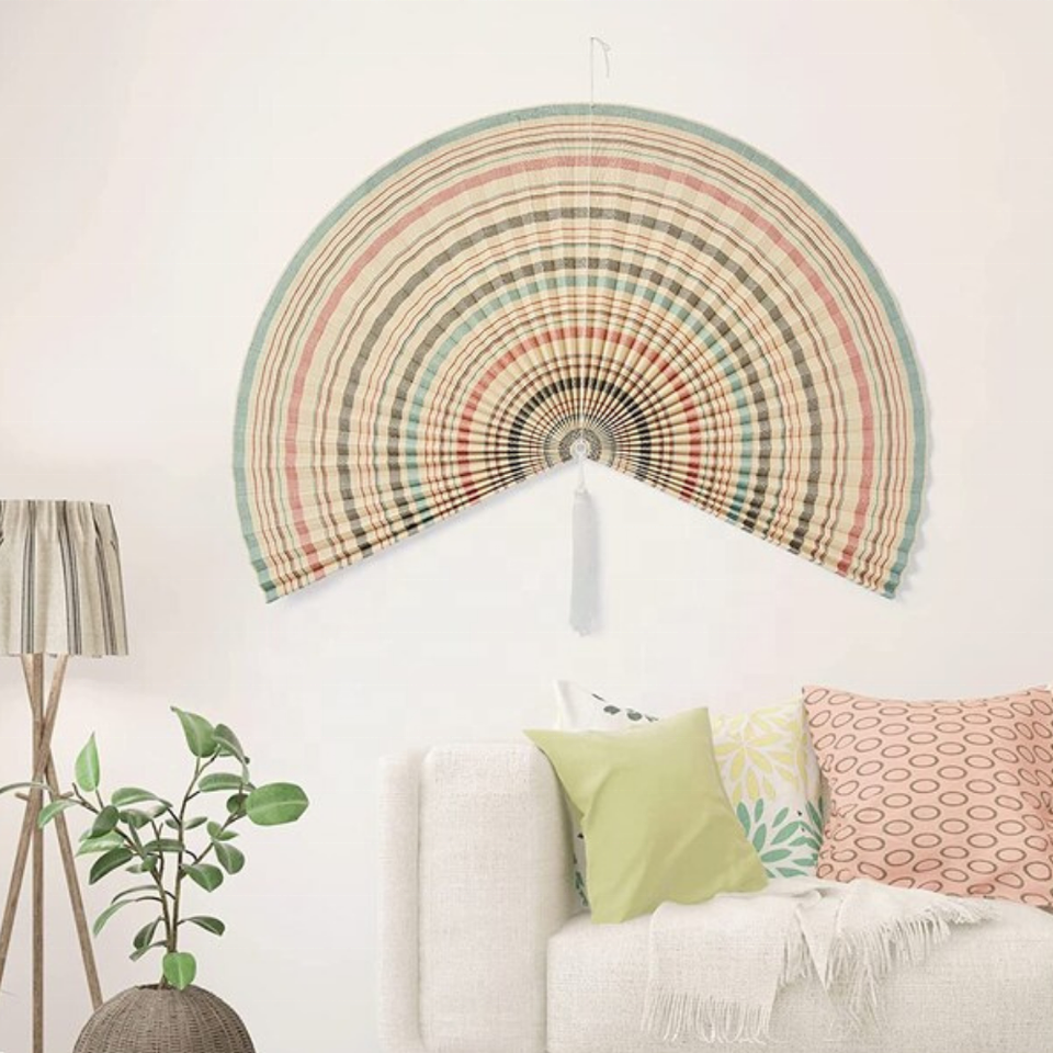 Amazon Hot Selling Giant Bamboo Wall Decor Fan- Fengshuo Wall Hanging Accent, Decorative Bohemian Wall Hanging Folding Fan